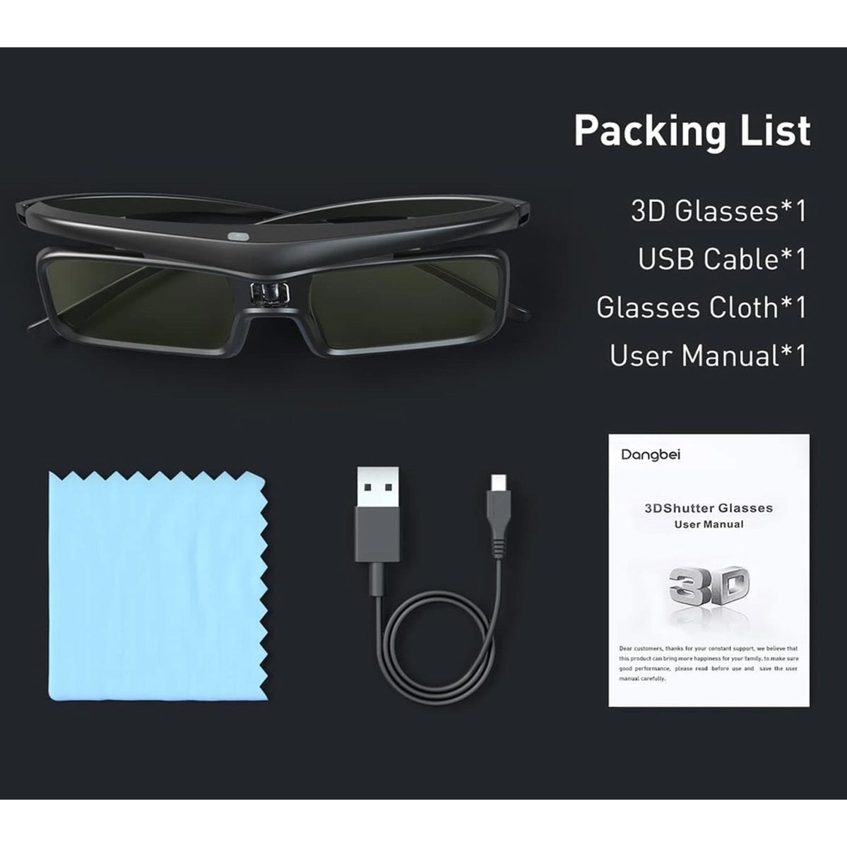 De Dangbei 3D-bril met DLP-Link brengt actieve 3D-projectie tot leven met vloeiende, flikkervrije beelden. Ze werken naadloos samen met DLP-Link-compatibele projectoren en bieden een meeslepende dieptewerking en levendige 3D-effecten, ideaal voor films, spellen en visuele presentaties.