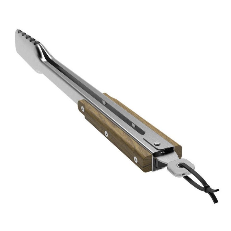 Deze tang is gemaakt van duurzaam roestvrij staal en heeft een sterke teakhouten handgreep die er niet alleen fantastisch uitziet, maar ook je handen veilig uit de buurt van de hitte houdt. Het handige vergrendelingsmechanisme zorgt voor eenvoudige opslag en de leren lus zorgt ervoor dat je de tang binnen handbereik kunt ophangen. Til je grillervaring naar een hoger niveau met de Traeger BBQ-tang!