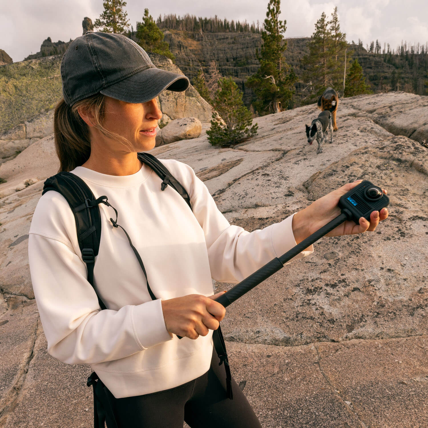 Dit ultraveelzijdige statief is ontworpen om je een stevig cameraplatform te bieden op elk oppervlak, van perfect vlak tot ruig en rotsachtig. De poten kunnen in een hoek worden vergrendeld, worden uitgeschoven, plat gelegd en aangepast om je te helpen de perfecte opname te maken—zelfs in zand of water. De afneembare kogelkop draait een volledige 360° en kantelt tot 90° om je te helpen de beste camerahoek vast te leggen. Het klapt in tot 15 cm en is gemaakt van duurzaam lichtgewicht aluminium, waardoor het gemakkelijk mee te nemen is op elk avontuur. Je kunt ook onzichtbare stokopnamen maken met een 360-camera door een compatibele 1/4-20 verlengstok te bevestigen. Monteer de stok op de kogelkop of verwijder de kogelkop en bevestig deze direct aan het statief, afhankelijk van wat je nodig hebt voor de opname.