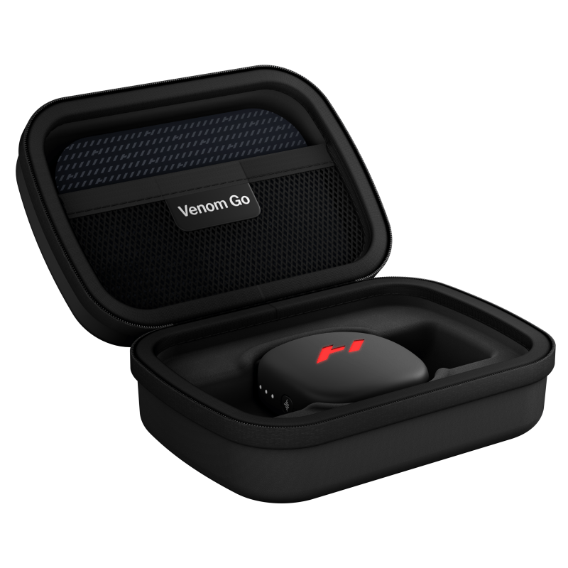 Deze draagcase beschermt je Venom Go pod en pads in een stevige, reisbestendige behuizing. Perfect om in je tas te gooien of aan je rugzak te klikken—de uitrusting blijft veilig, compact en snel te pakken.