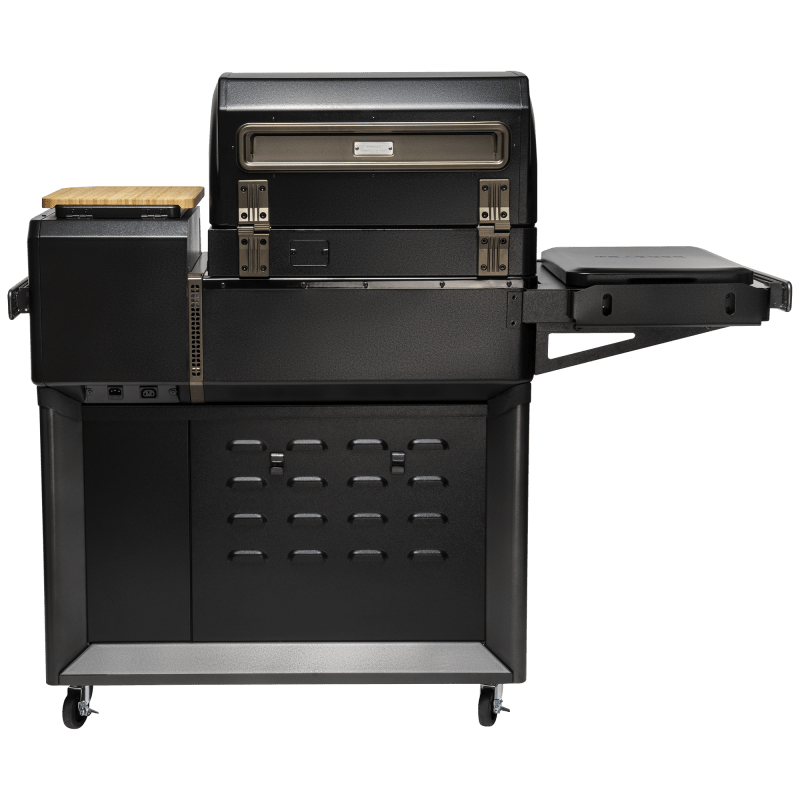 Dankzij de Smart Combustion™-technologie behoudt deze grill een constante temperatuur, terwijl de inductiekookplaat eindeloze culinaire mogelijkheden biedt. Schoonmaken is een fluitje van een cent met het EZ-Clean™ vet- en asvat, en met de WiFIRE® MEATER®-thermometers kunt u uw eten overal in de gaten houden.
