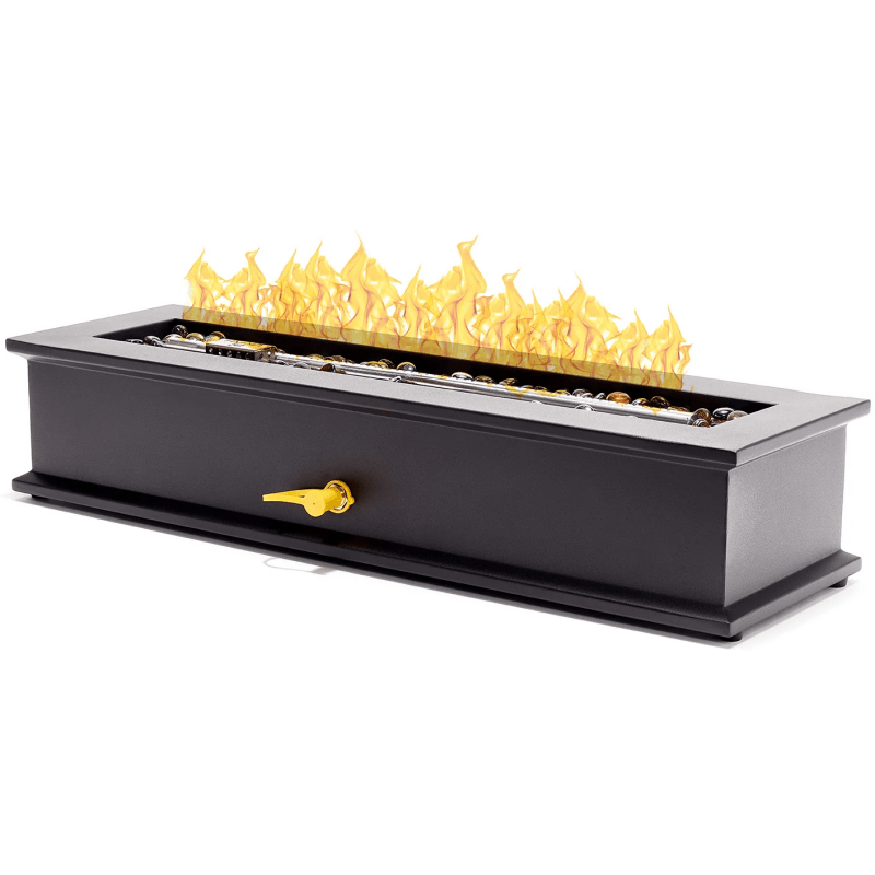 Elektronische ontsteking levert vuur met een druk op de knop; vlamregeling laat je de warmte nauwkeurig afstemmen. De meegeleverde beschermhoes en glazen media verbeteren veiligheid en esthetiek.